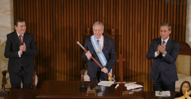 Primero se le tomó juramento a Silva Neder, quien luego estuvo en la conducción de la sesión especial. Posteriormente este hizo lo mismo con Elías Suárez quien, además, recibió los atributos de gobernador de parte del mandatario saliente y senador nacional, Gerardo Zamora.