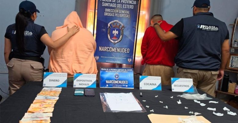 De fuentes policiales se conoció que durante el operativo policial fueron detenidos un hombre y una mujer, quienes son mayores de edad, quienes quedaron a disposición de la Justicia. Además se secuestraron 12 envoltorios de cocaína con un peso total de más de 24 gramos; elementos utilizados para el fraccionamiento de sustancias; $ 187.500 y dos teléfonos celulares.