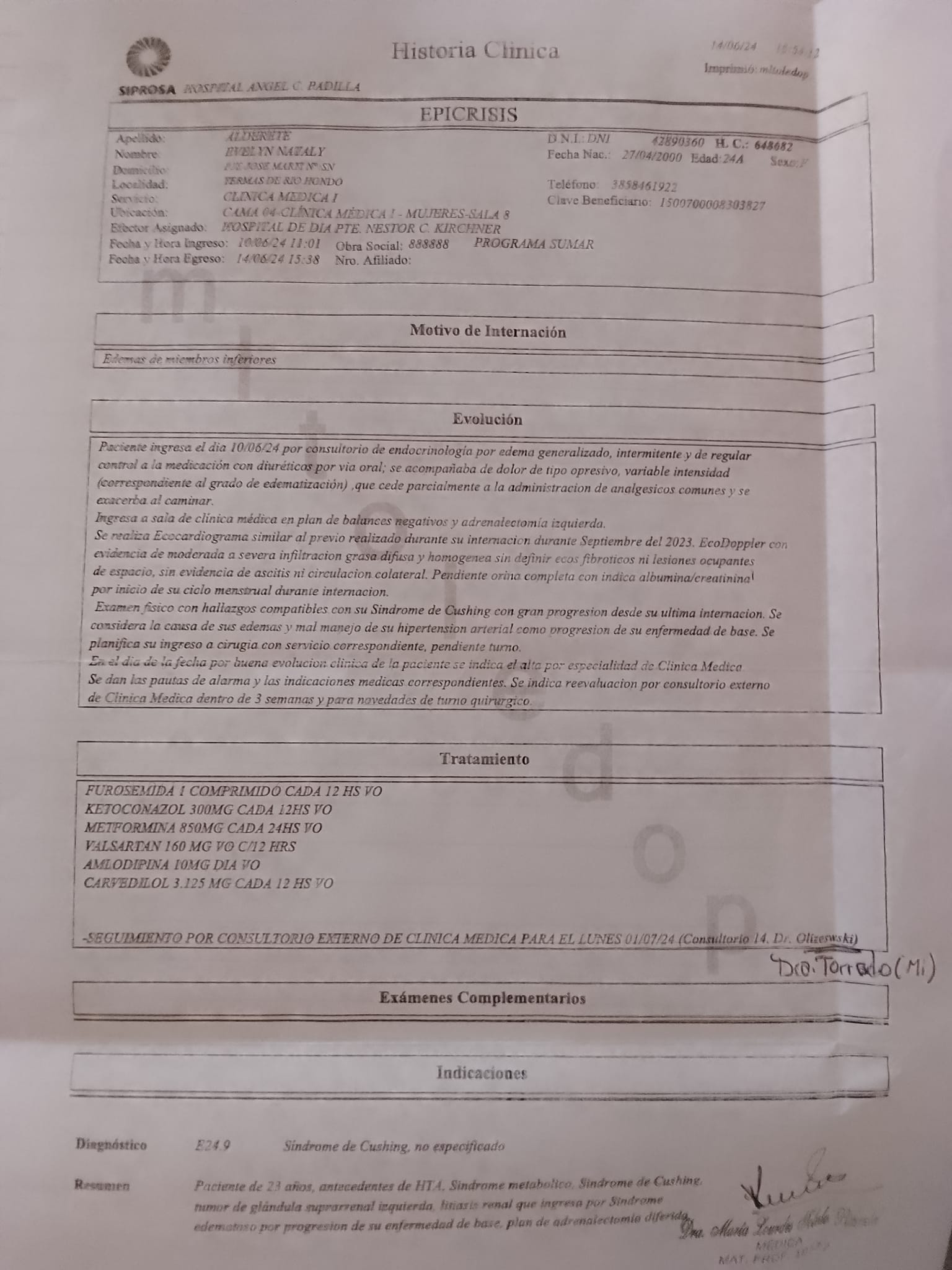 Ella explicó que los tratamientos médicos los está realizando en el Centro de Salud de Tucumán y que la cirugía que necesita tiene un costo de $2.500.000. «Es lo que me salen los insumos que el centro de salud necesita para poder realizarla», explicó.